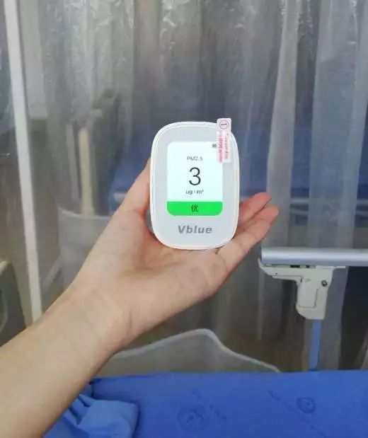 而層流床(單人無菌室)運行時頂部的風機吸入環境空氣,經光觸媒空氣凈化消毒系統濾過成為潔凈無菌空氣,再以層流的方式送回,并使床內區域保持正壓,防止外面塵埃粒子進去,用儀器測得PM2.5結果如下: